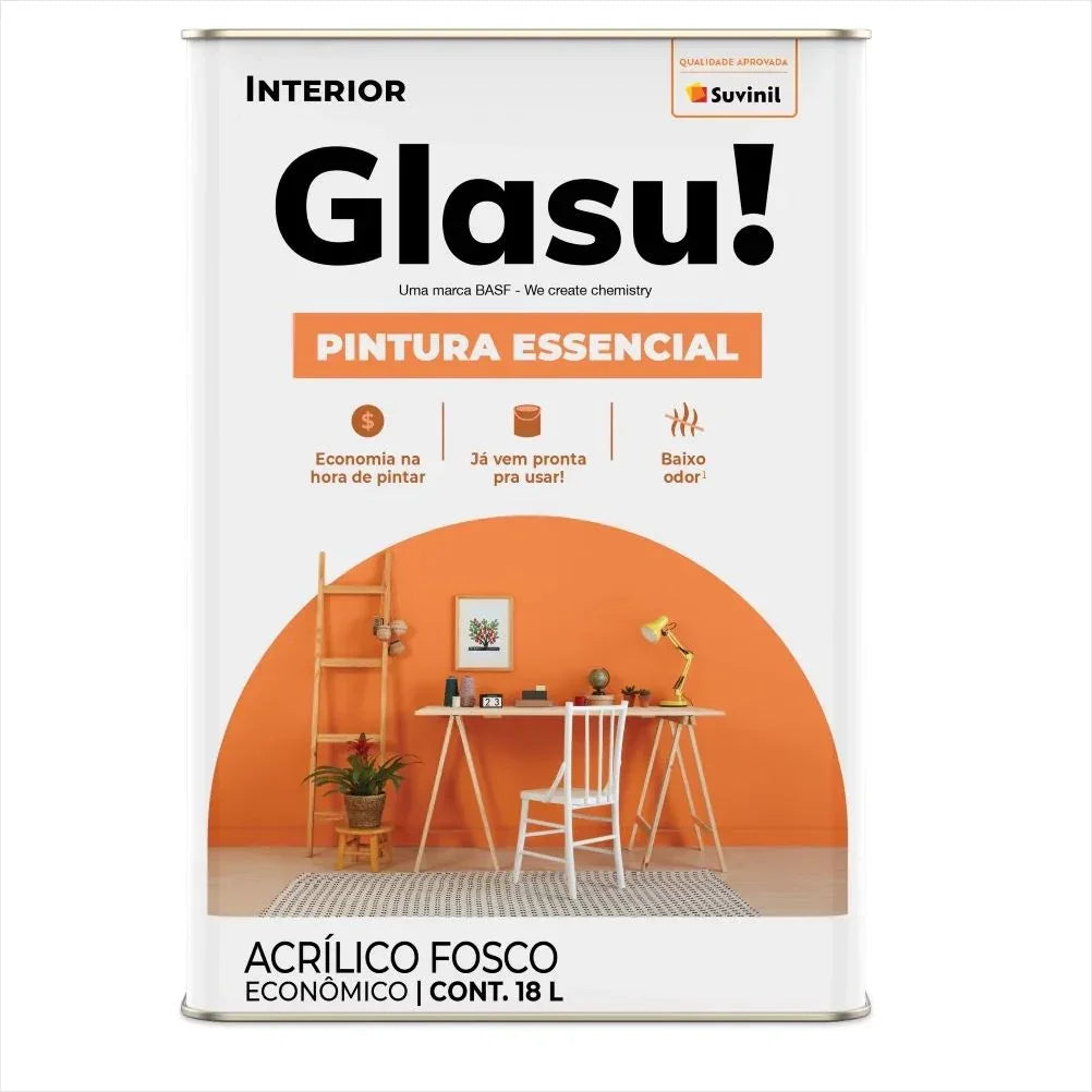 Ideal para aplicação em áreas internas, a tinta acrílica Glasu Pintura Essencial destaca-se pela sua facilidade de aplicação e secagem rápida. Com uma fórmula de alta resistência, proporciona um acabamento uniforme e duradouro.