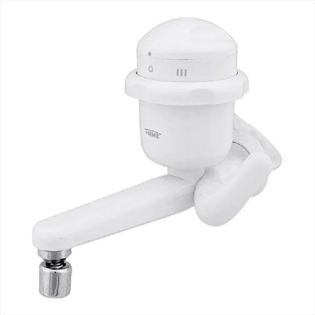 Desfrute do máximo conforto e praticidade em sua cozinha ou lavatório com a Torneira Elétrica Fame Bica Reta c/Arejador 1593. Projetada para proporcionar água quente instantânea, esta torneira é a solução ideal para quem busca eficiência e economia. Sua tecnologia avançada garante aquecimento rápido e controle preciso da temperatura, transformando a rotina de lavar louças ou as mãos em uma experiência muito mais agradável e eficiente. Com um design prático e fabricada em Termoplástico de engenharia, a Torneira Fame 1593 combina durabilidade com um toque moderno para qualquer ambiente.